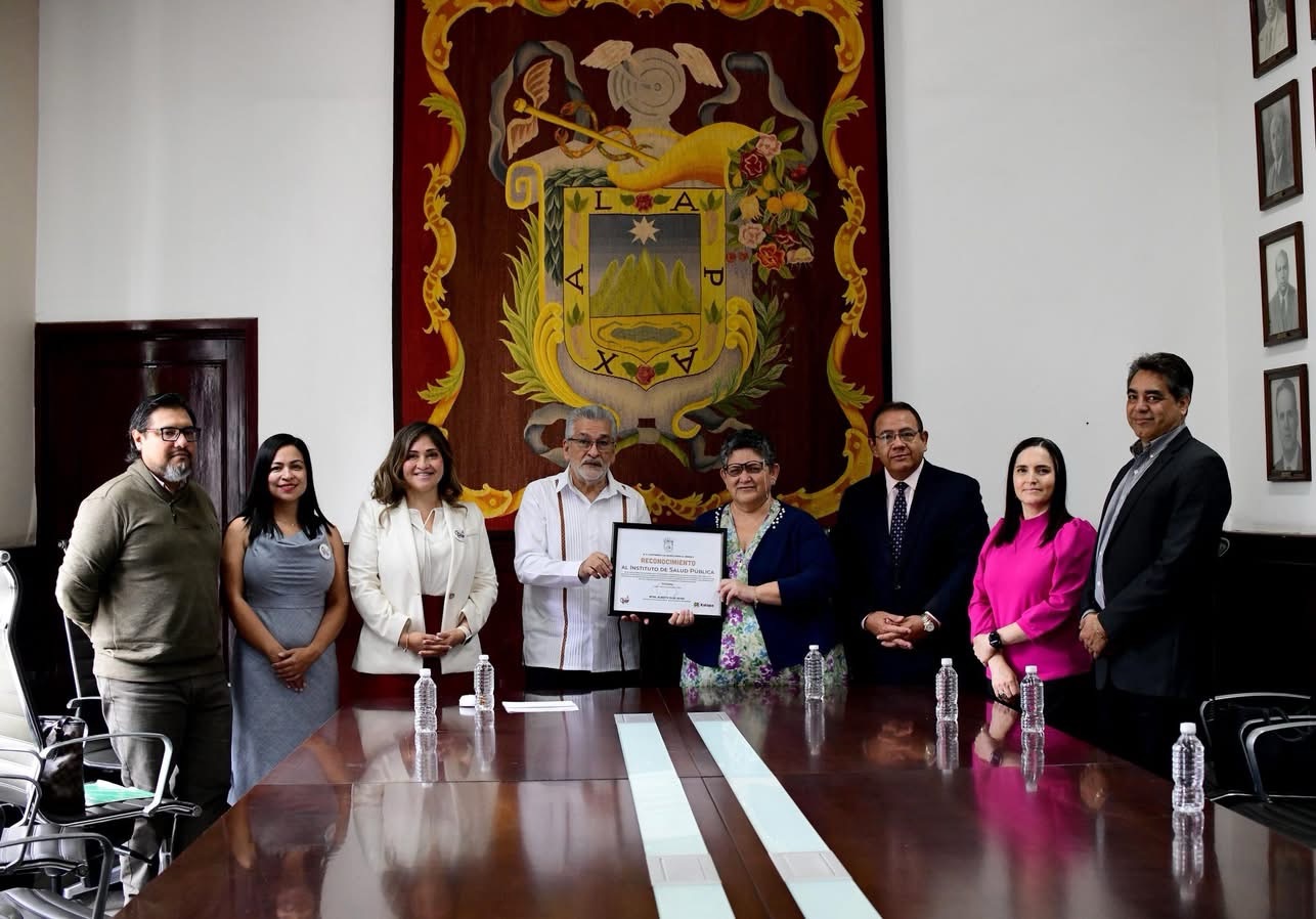 Xalapa, Ver.; 8 de julio de 2025.- Este martes, Alberto Islas Reyes, alcalde de Xalapa, hizo entrega de un reconocimiento a las autoridades del Instituto de Salud Pública de la Universidad Veracruzana.