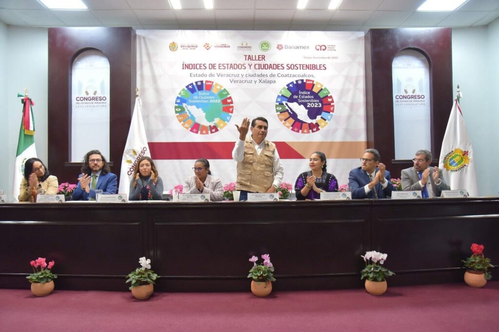 Xalapa, Ver.; 12 de noviembre de 2025.- El Congreso de Veracruz contribuye al fortalecimiento del cuidado del medio ambiente, a la reducción de la desigualdad y al mejoramiento del desarrollo urbano y de las condiciones de vida de los más de ocho millones de habitantes del estado, afirmó la presidenta de la Mesa Directiva de la LXVII Legislatura, Naomi Edith Gómez Santos, al inaugurar el taller Índices de Estados y Ciudades Sostenibles, organizado por el Grupo Legislativo del Partido Verde Ecologista de México (PVEM), en colaboración con el Instituto Mexicano para la Competitividad, A. C. (IMCO), la Fundación NovaGob y el Centro Mario Molina.