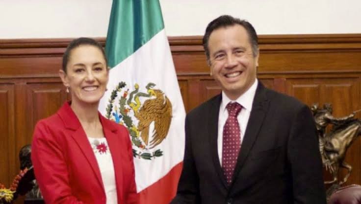 Cuitláhuac García Jiménez, gobernador de Veracruz; y Claudia Sheinbaum Pardo, precandidata al gobierno de México.