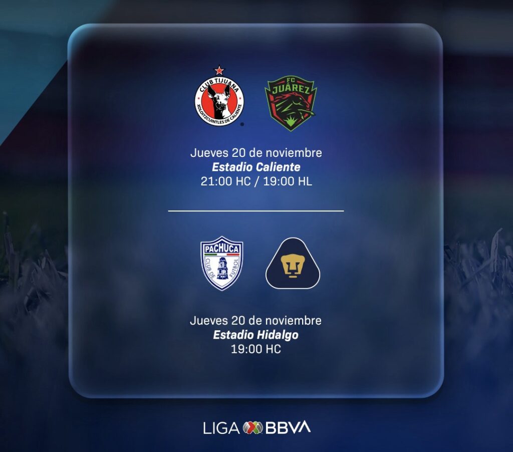 Las acciones se desarrollarán el jueves 20 de noviembre, cuando Pachuca reciba a Pumas en el Estadio Hidalgo a las 19:00 horas. Será un duelo de alto voltaje entre dos planteles acostumbrados a pelear en instancias finales, donde el margen de error será mínimo.