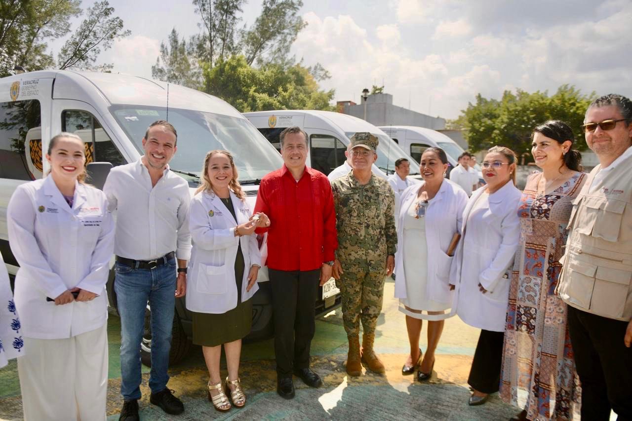 Cuitláhuac García Jiménez, gobernador del estado y la secretaria de Salud, Guadalupe Díaz del Castillo Flores, entregaron las llaves de 13 camionetas a las sedes de Pánuco, Tuxpan, Poza Rica, Martínez de la Torre, Xalapa, Córdoba, Orizaba, Veracruz, Cosamaloapan, San Andrés Tuxtla y Coatzacoalcos, así como la dirección estatal y el Servicio Nacional de Salud Pública.