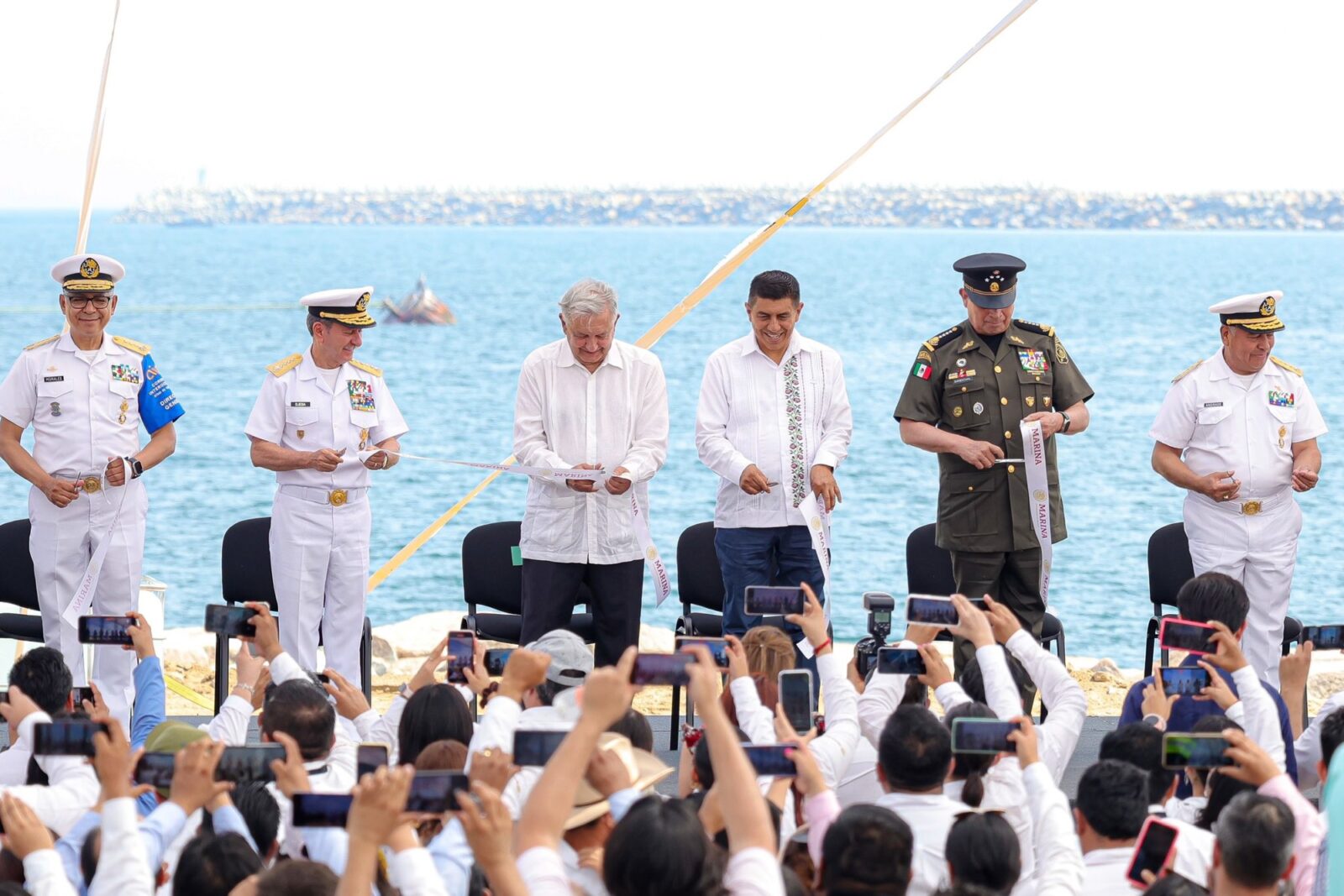 Salina Cruz, Oax.- 26 de febrero de 2024.- Andrés Manuel López Obrador, presidente de México, visitó la ciudad y puerto de Salina Cruz para inaugurar el ‘Rompeolas de Salina Cruz’, en Oaxaca.