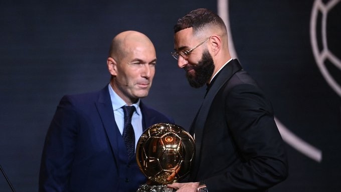 Benzema, recibió el Balón de Oro a manos del francés Zinedine Zidane, su exentrenador en el Real Madrid.