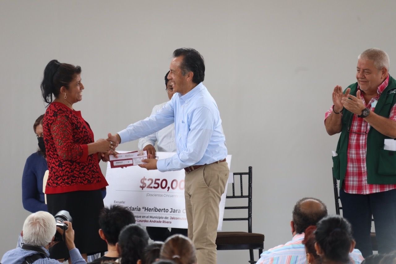 Xalapa, Ver. 29 de julio de 2022.– Cuitláhuac García Jiménez, gobernador de Veracruz, hizo entrega de recursos a Comités Escolares de Administración Participativa del Programa Federal ‘La Escuela es Nuestra’ en los municipios de Actopan, Jalcomulco y Xalapa. Estuvo acompañado por Manuel Huerta Ladrón de Guevara, delegado estatal de Programas del Bienestar.
