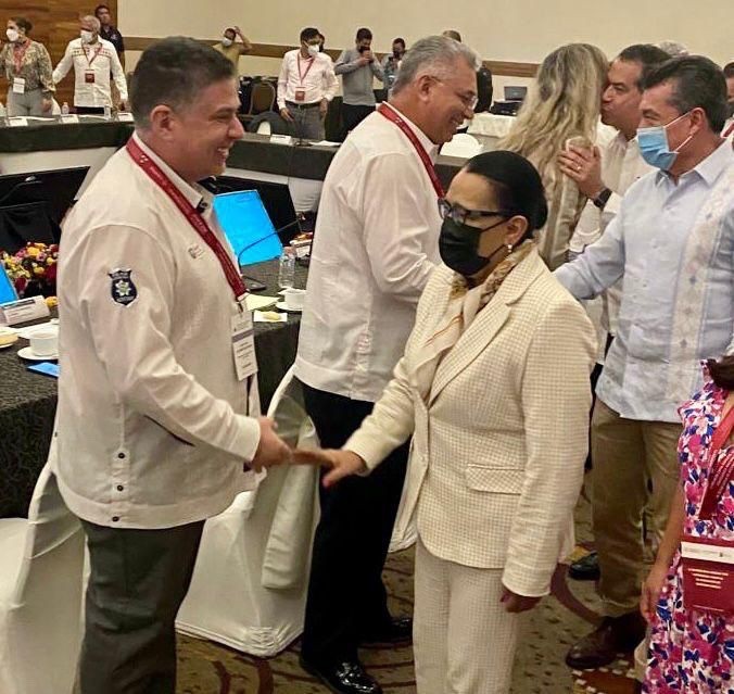 El secretario estatal Hugo Gutiérrez Maldonado acudió en representación del Gobierno del Estado de Veracruz, donde destacó el trabajo desarrollado durante los casi cuatro años de administración estatal, lo que ha permitido disminuir de manera significativa la incidencia delictiva y conformar cuerpos policiacos con altos estándares de profesionalización y certificados por instancias nacionales y del extranjero.