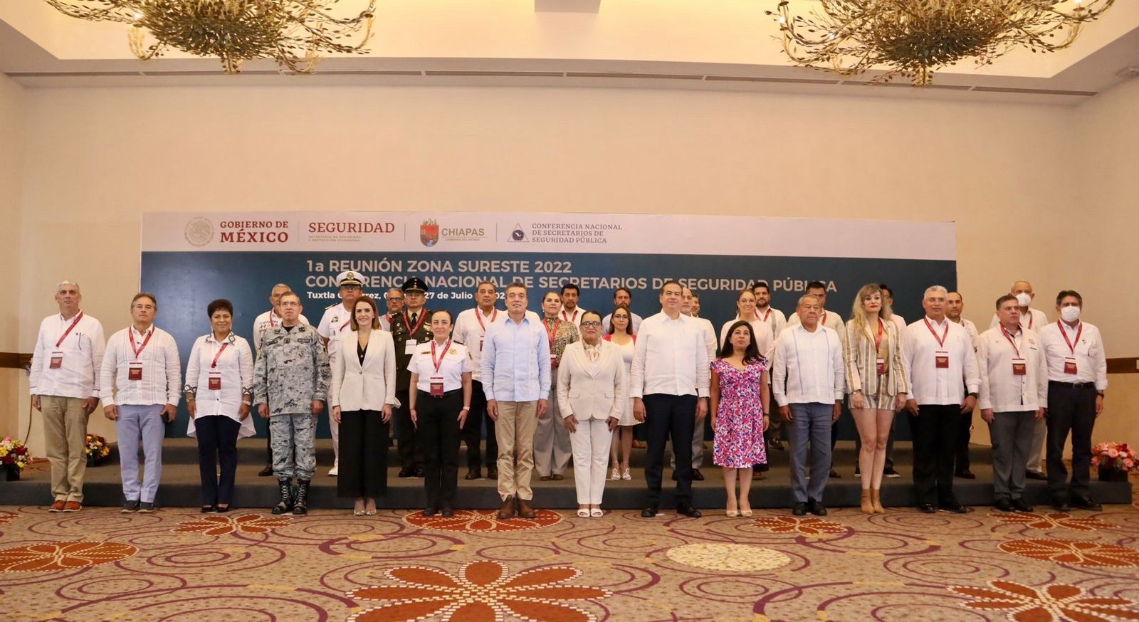 La reunión estuvo encabezada por Rosa Icela Rodríguez Velázquez, titular de la Secretaría de Seguridad y Protección Ciudadana (SSPC); el Subsecretario de Seguridad Pública, Ricardo Mejía Berdeja; el Comandante de la Guardia Nacional, General Luis Rodríguez Bucio y el Gobernador de Chiapas, Rutilio Escandón Cadenas; además de la asistencia de las y los secretarios de seguridad pública de los estados de Campeche, Chiapas, Oaxaca, Quintana Roo, Tabasco, Veracruz y Yucatán.