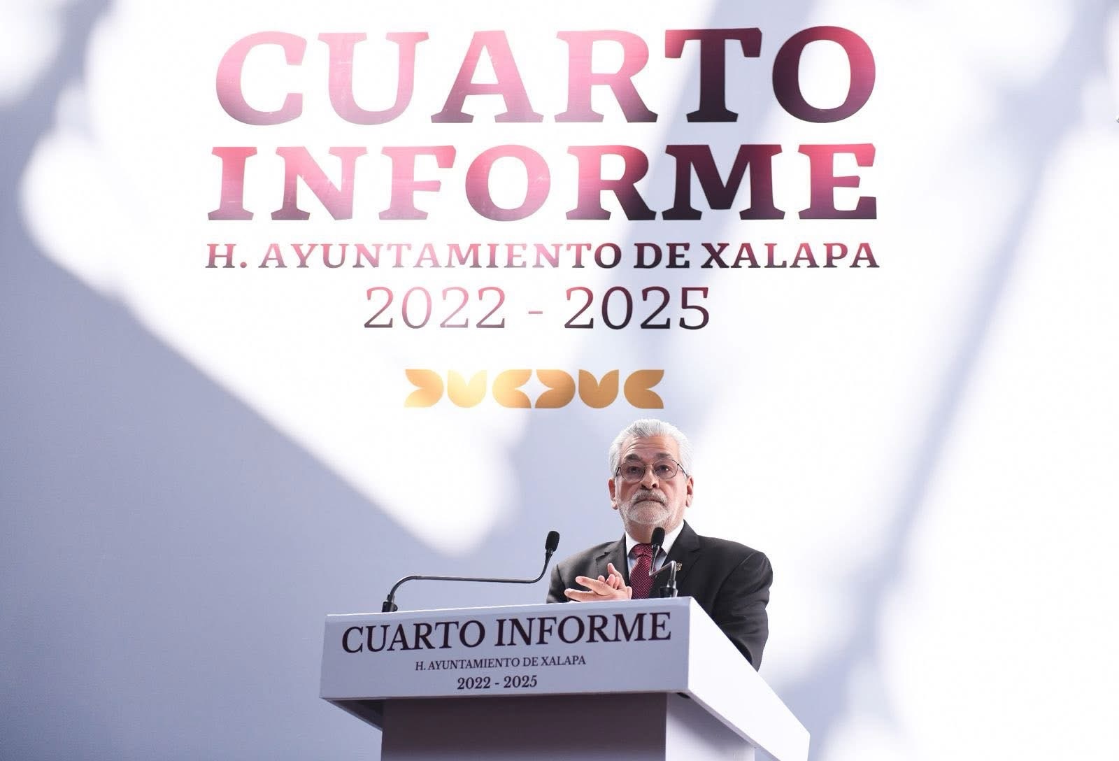 Xalapa, Ver.; 10 de diciembre de 2025.- Alberto Islas Reyes, presidente municipal de Xalapa, presentó, en cumplimiento a lo que establece la Ley Orgánica del Municipio Libre y el Reglamento Interior de Gobierno, y Sesión Solemne de Cabildo, el Cuarto Informe de Gobierno Municipal, destacando obra pública, y saneamiento a las finanzas públicas.