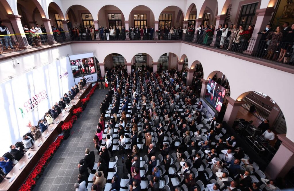 En el patio central del Palacio Municipal, Islas Reyes presentó el Cuarto y último informe del Gobierno Municipal.