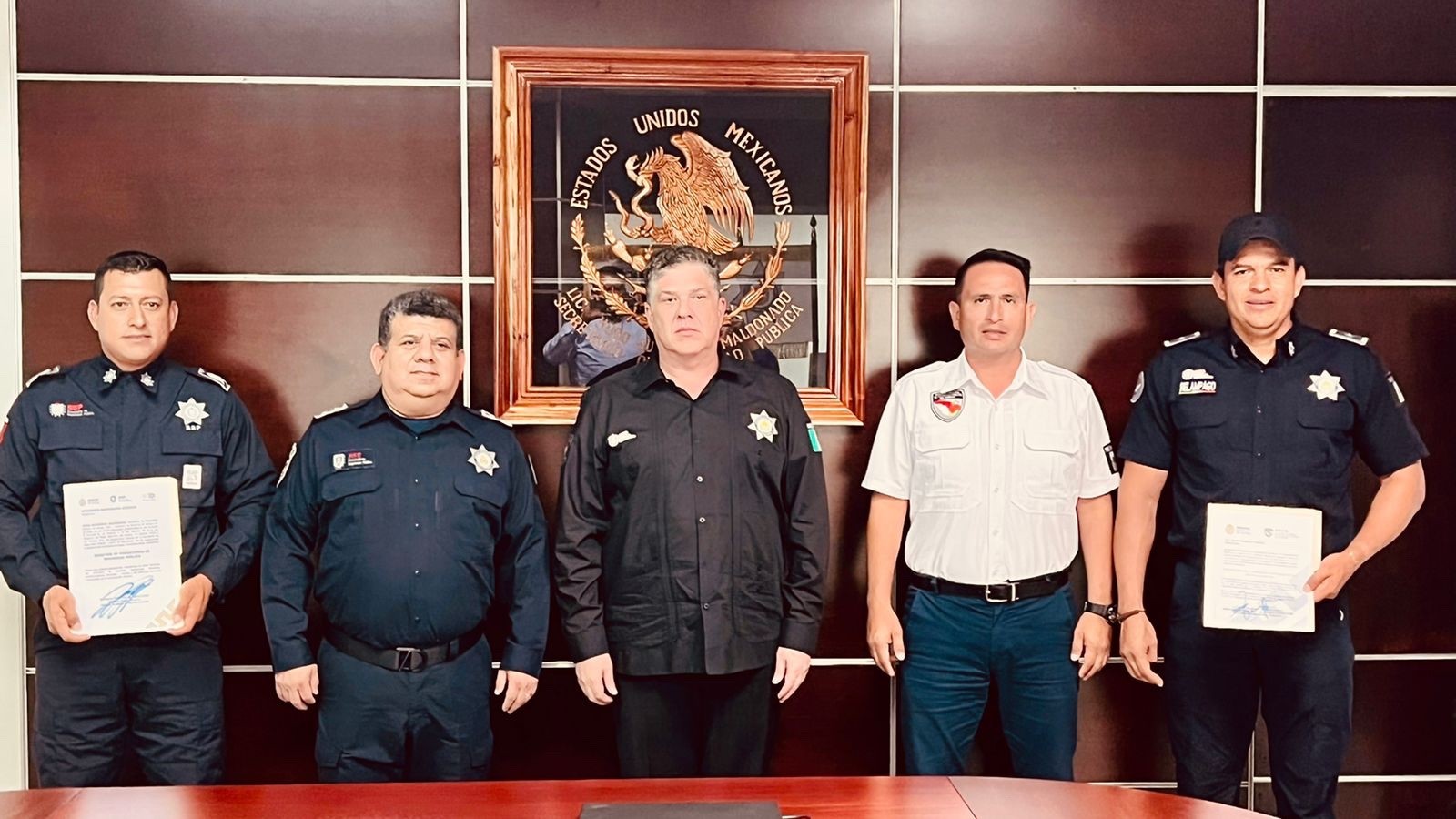 El Secretario de Seguridad Pública, Hugo Gutiérrez Maldonado agradeció la entrega, profesionalismo, compromiso y destacada labor de ambos servidores públicos para la construcción de la paz en la entidad y los exhorta a continuar sus labores con honor, lealtad y disciplina, que son la base principal de esta institución.