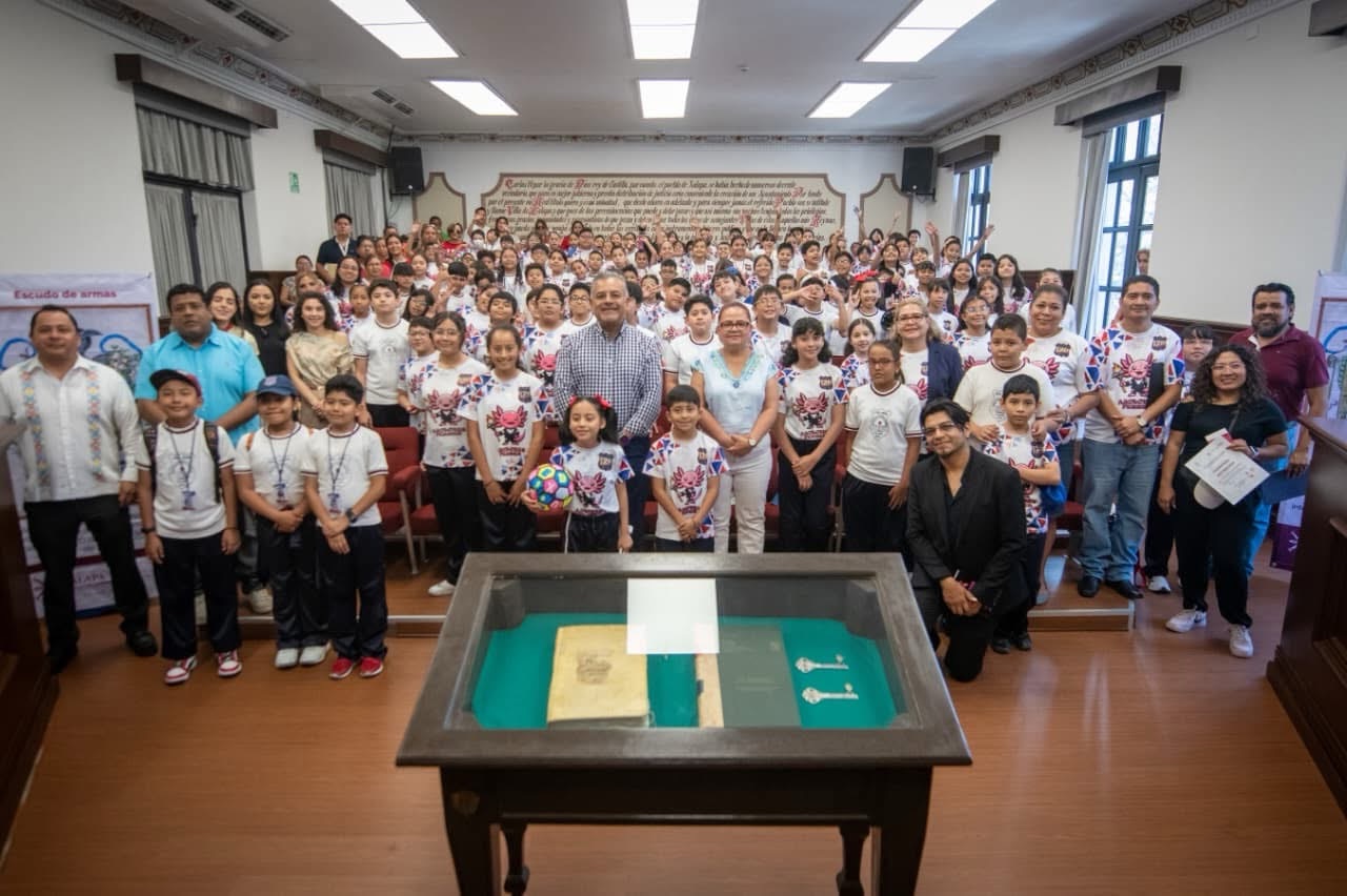 Como parte del programa, 138 estudiantes de cuarto y quinto grado de primaria visitaron la Sala de Cabildo, recorrieron el Palacio Municipal, conocieron el primer libro de Cabildo de 1794, el Escudo de Armas, así como el Archivo Municipal. Además, recibieron balones y reconocimientos de las autoridades en el marco del Día de la Niña y el Niño.