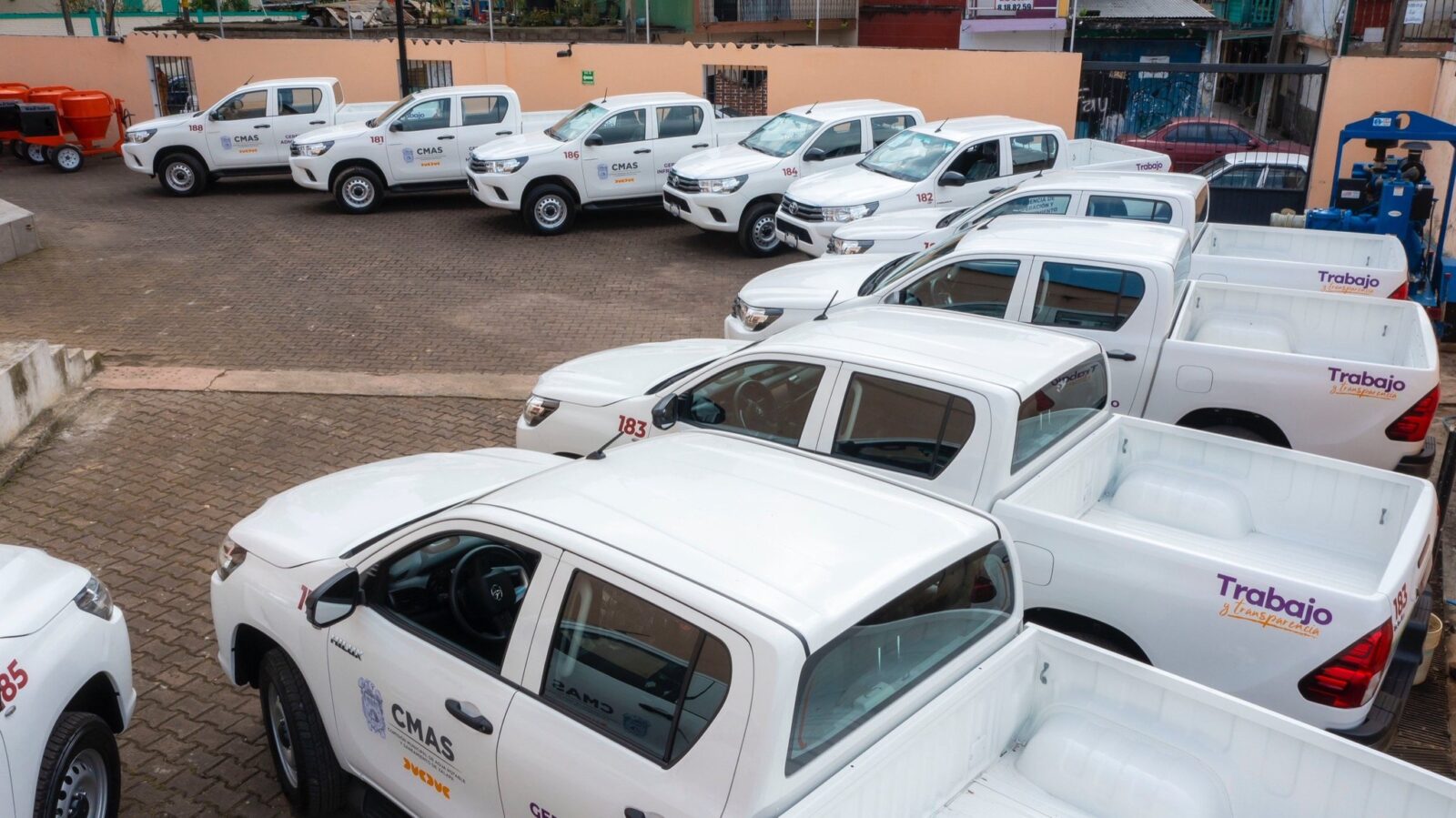 El parque vehicular entregado, consta de 10 unidades tipo Pick-Up doble cabina y 4 revolvedoras adquiridas con recursos propios de la CMAS.