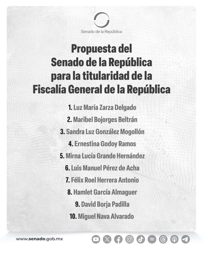 Los perfiles fueron turnados de inmediato a la presidenta Claudia Sheinbaum, quien deberá remitir entre hoy y mañana al Senado una terna.