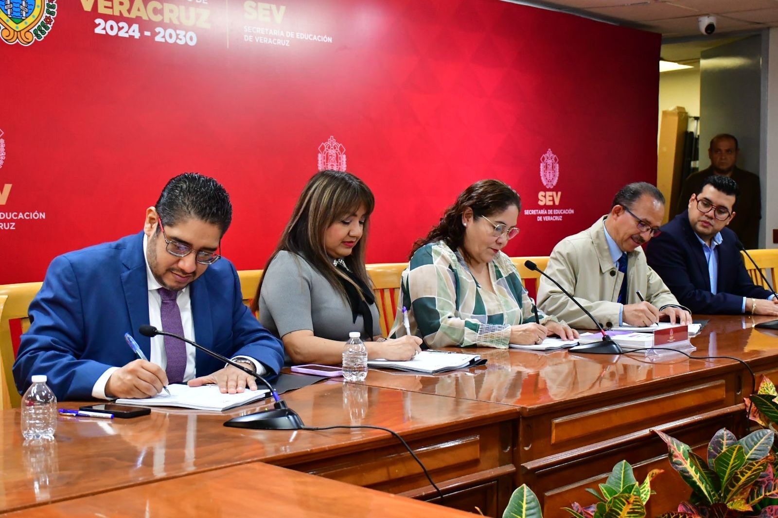 Encabezaron esta firma Claudia Tello Espinosa, titular de la Secretaría de Educación; Josué Cervantes Martínez, presidente de la Junta Local Ejecutiva del INE; y Marisol Alicia Delgadillo Morales, consejera presidenta del Ople Veracruz, y Luis Fernando Reyes Rocha, secretario ejecutivo del Organismo electoral.