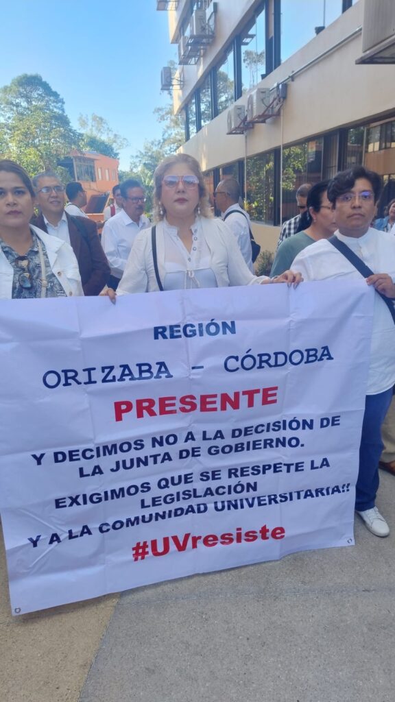 La comunidad universitaria conformada por trabajadores, estudiantes y catedráticos tomaron pacíficamente este miércoles las oficinas de la la Rectoría de la Universidad Veracruzana, también participaron los exrectores, Raúl Arias Lovillo, Sara Ladrón de Guevara y los cuatro aspirantes a la Rectoría.