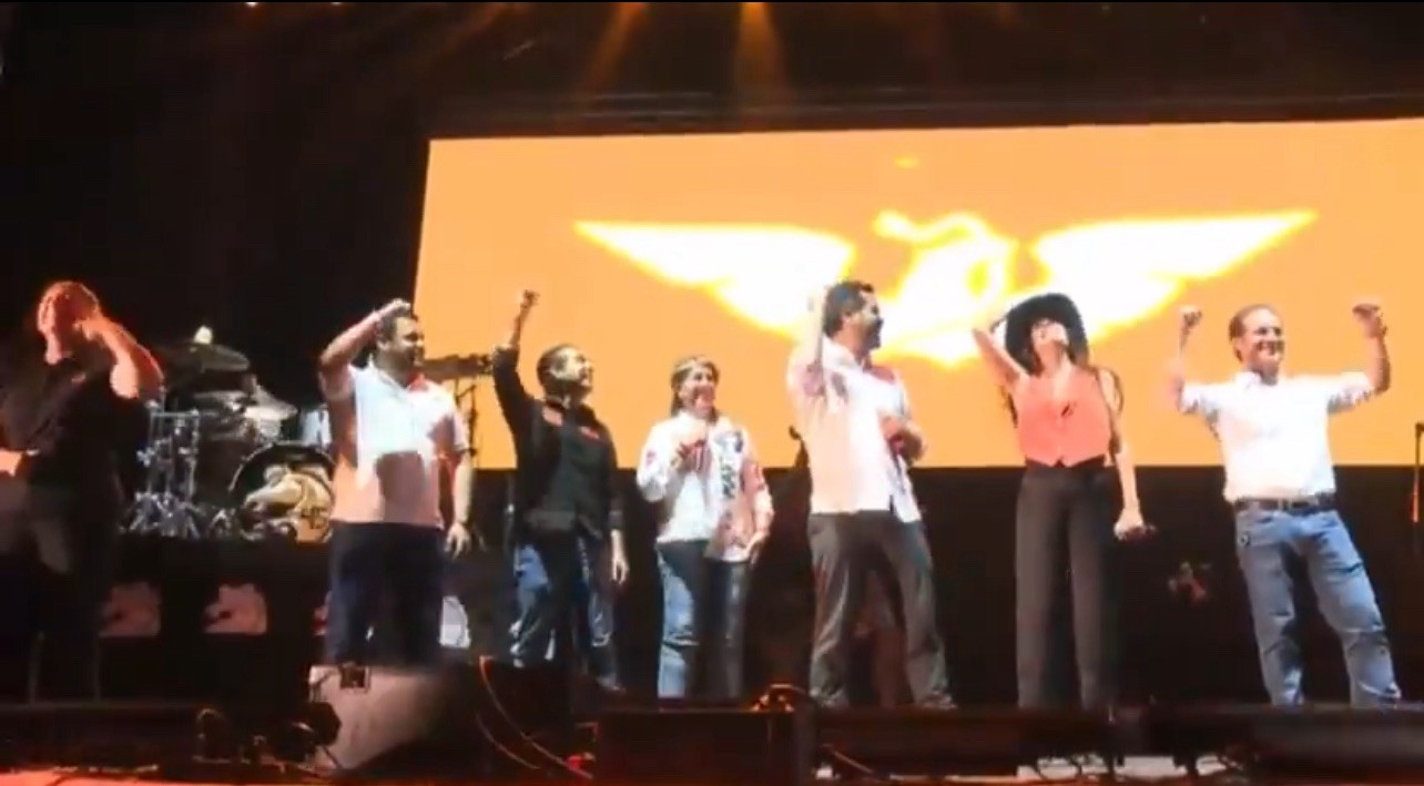 – Jorge Álvarez Maynez, candidato presidencial del partido naranja, presente en el acto, se encuentra bien, junto con su comitiva que estaba en el escenario.