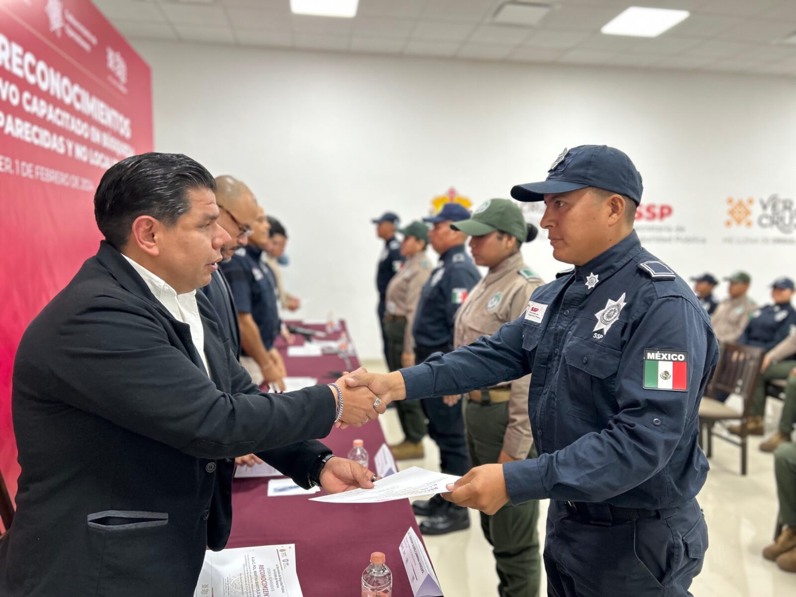 Xalapa, Ver., 1 de febrero de 2024.- Luego de haber cursado 40 horas de protocolos de Actuación Policial y conocimientos enfocados al acompañamiento de colectivos en la búsqueda de personas, los primeros 50 elementos de la Secretaría de Seguridad Pública, a través de Policía Estatal y Fuerza Civil finalizaron dicha actualización.