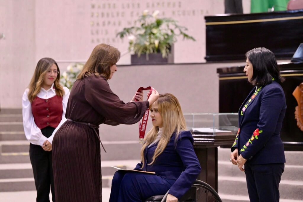 Xalapa, Ver.; 25 de febrero de 2026.- En reconocimiento a su destacada trayectoria en favor de la inclusión, la accesibilidad y el deporte adaptado, la gobernadora Rocío Nahle García entregó, en representación de los tres Poderes del Estado, la Medalla Adolfo Ruiz Cortines 2025 a la ciudadana María Luisa Bandala Pantoja.