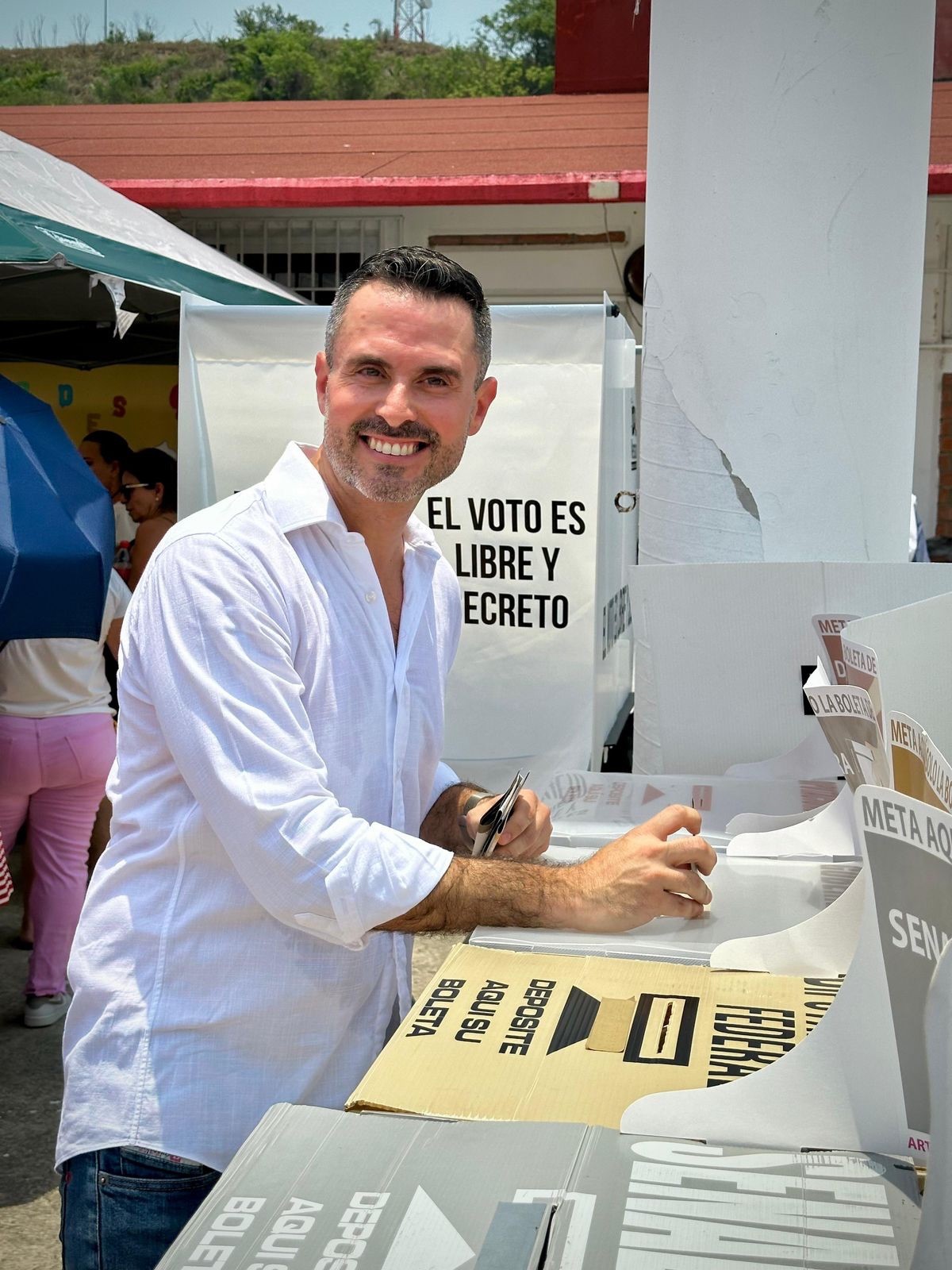 Redacción, Xalapa, Ver., a 2 de junio de 2024.- Polo Deschamps, candidato de Movimiento Ciudadano a la gubernatura, votó acompañado de su familia en la casilla básica ubicada en la escuela primaria Benito Juárez.